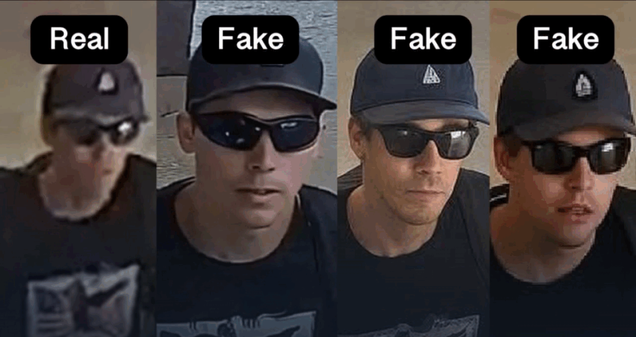 Tuttavia, le immagini, scattate da telecamere di sorveglianza, avevano una qualità troppo bassa per permettere un riconoscimento. Questa scarsa risoluzione ha spinto diversi utenti a usare l’intelligenza artificiale per migliorare la foto e agevolare l’identificazione. Così hanno spopolato su Facebook, Telegram, X e numerosi altri social, foto del presunto killer con lineamenti del tutto diversi da quelli del vero colpevole.