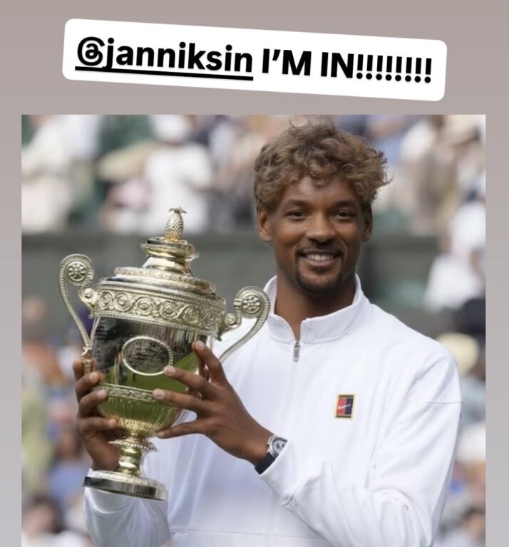 Se il tennis non è nelle corde di Will Smith, sicuramente gli ha portato grandi soddisfazioni professionali. Nel 2022, il ruolo di Richard Williams – padre delle sorelle Venus e Serena – nel film Una famiglia vincente gli era valso l’Oscar. Forse anche per questo Will Smith ha colto al volo la battuta di Sinner: «Ci sto!!!», ha scritto tutto in maiuscoletto su una storia di Instagram. Ma il vero capolavoro è la foto, in cui allo scatto di Sinner che solleva il trofeo di Wimbledon è stato aggiunto il suo volto sorridente. Forse il primo passo verso un progetto in qualche modo concreto.