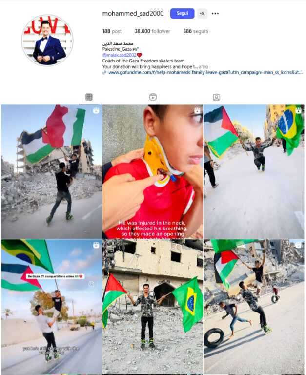 L’autore reale del video è Mohammed, un giovane di Gaza che, oltre a gestire un profilo Instagram, cura anche un canale YouTube dove pubblica video delle sue esibizioni tra le macerie della città. Risulta, inoltre, coach del gruppo “Gaza Freedom Skaters“. Nel post in cui ha pubblicato il filmato non compare alcun riferimento politico, né a favore né contro il governo italiano: